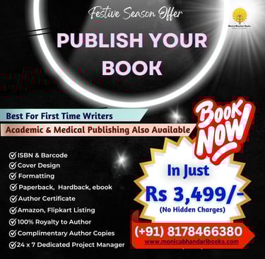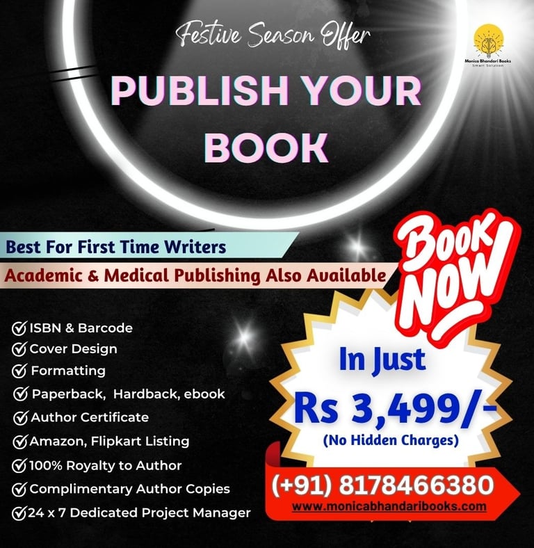 " I am too much happy to get toch with Monica Bhandari Books, the excellent Publication. I gladly do express my satisfaction for the mild and benevolent dealings of the Publication. Particular mention should be made of Neha and Rajen, for the dedicated behaviour of the both. Last year my 4 number of Books have published and this year too, another 4 Books are on the process to be published. Hope, all the Hon'le Writers wish to publish their Books, would be totally satisfied if they Publish their Books with MonicaBhandari Publication."